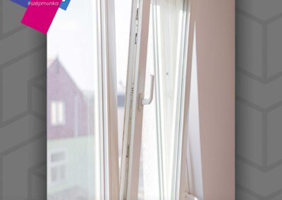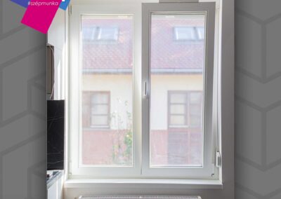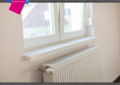 Nyílászáróztunk is, műanyag redőnyt és párkányt is telepítettünk, valamint tőlünk van a Krono remek 8mm-es laminált padlója, ami a Grizzly Montreux oak fantázianevet kapta.