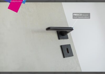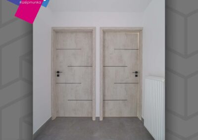 Megbízónk beltéri ajtó választása a Basic CPL termékcsalád Lindosz Z típusára és a chromix fehér színre esett – fekete intarzia csíkkal. (Hab a tortán a Bussare Fresco fekete kilincse, ami nagyon ideillik!)