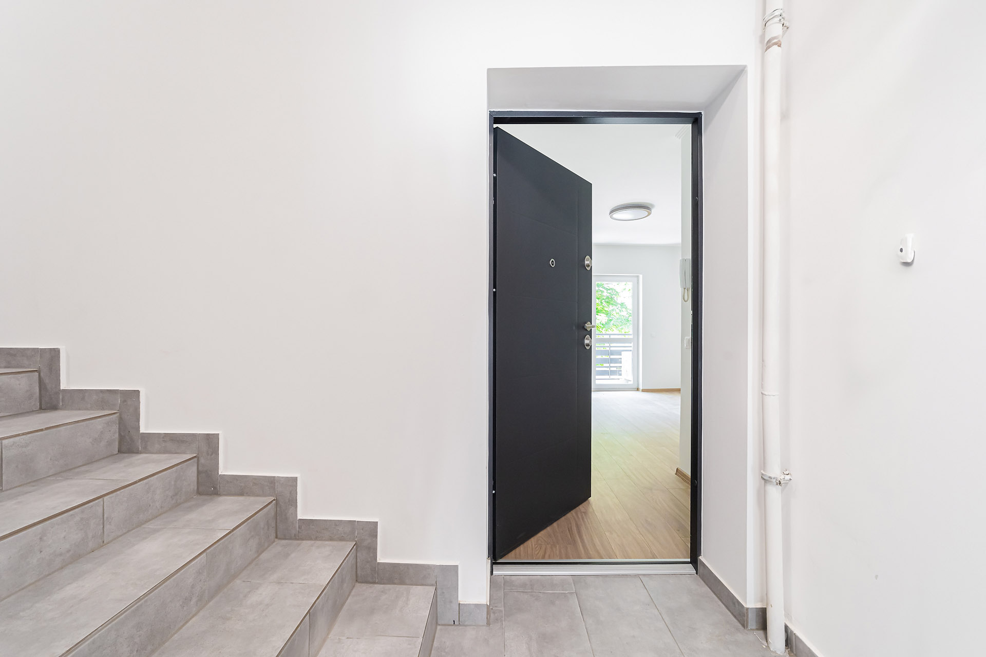 Sík lépcsőházi biztonsági bejárati acélajtó