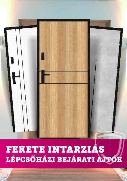 Fekete intarziás lépcsőházi bejárati ajtók
