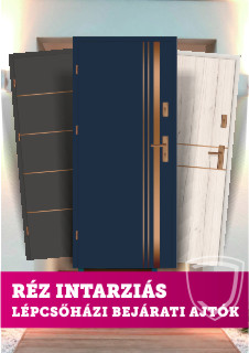 Réz intarziás lépcsőházi bejárati ajtók