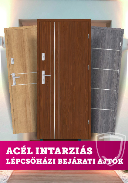 Hagyományos vonalak modern technológiában.Fóliázott MDF lépcsőházi bejárati ajtók