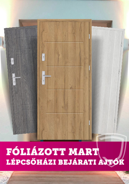 Hagyományos vonalak modern technológiában.Fóliázott MDF lépcsőházi bejárati ajtók