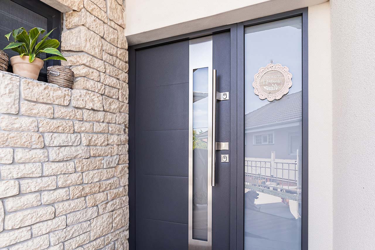 Delta Special 68S bejárati ajtó Kaposváron, antracit színben, oldalvilágítással