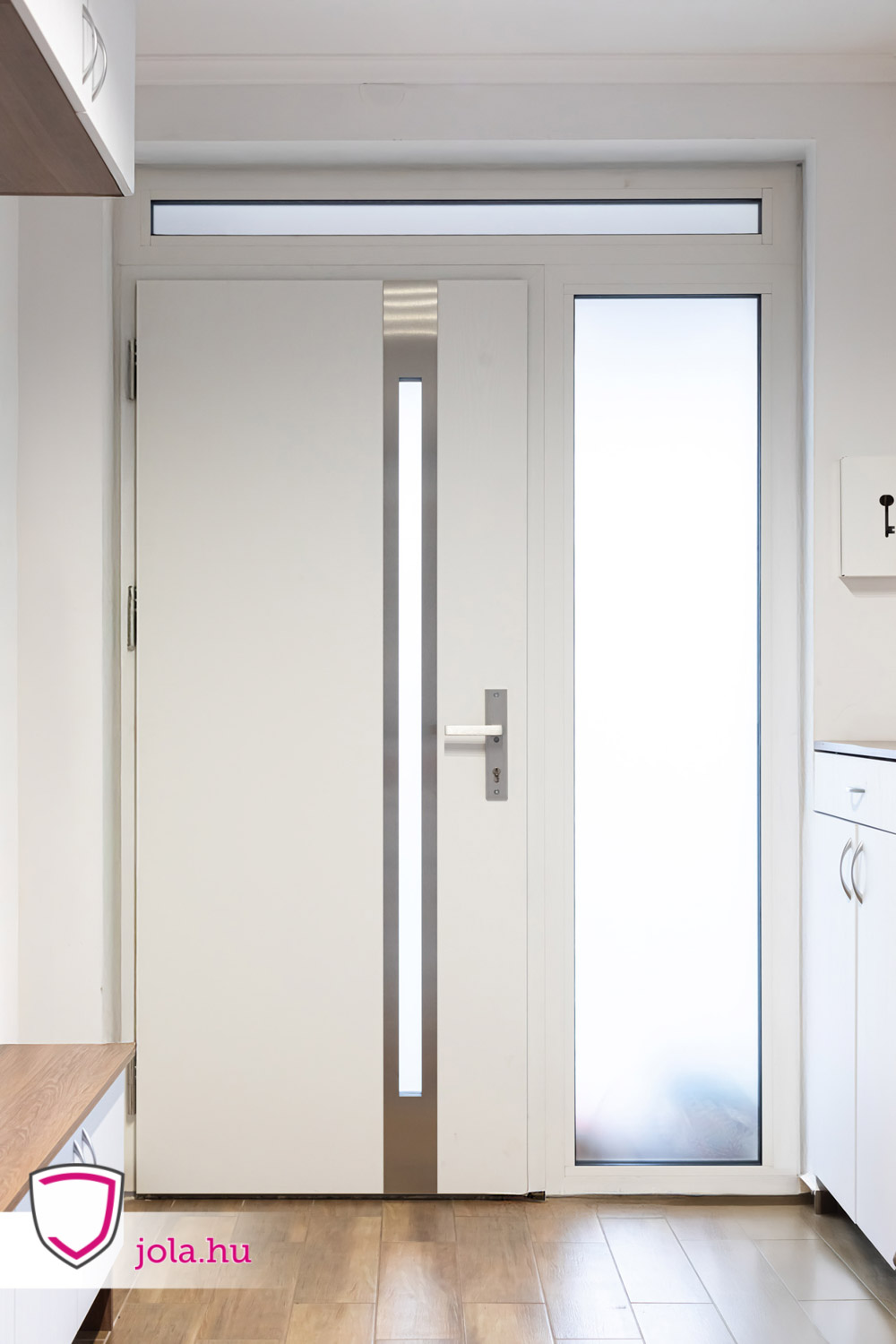 Fehér Acél Plus Wels bejárati ajtó, üvegbetét, Fót