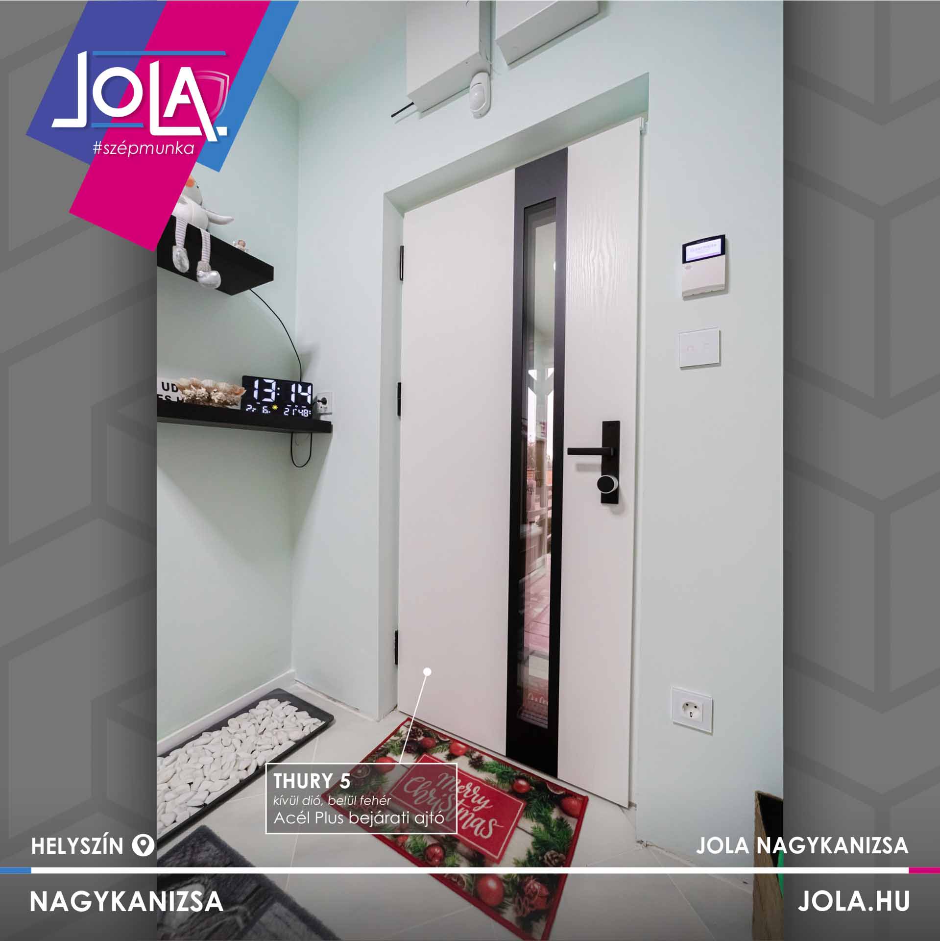 Kömmerling bejárati ajtó és portál dió színben, JOLA Paks bejáratánál