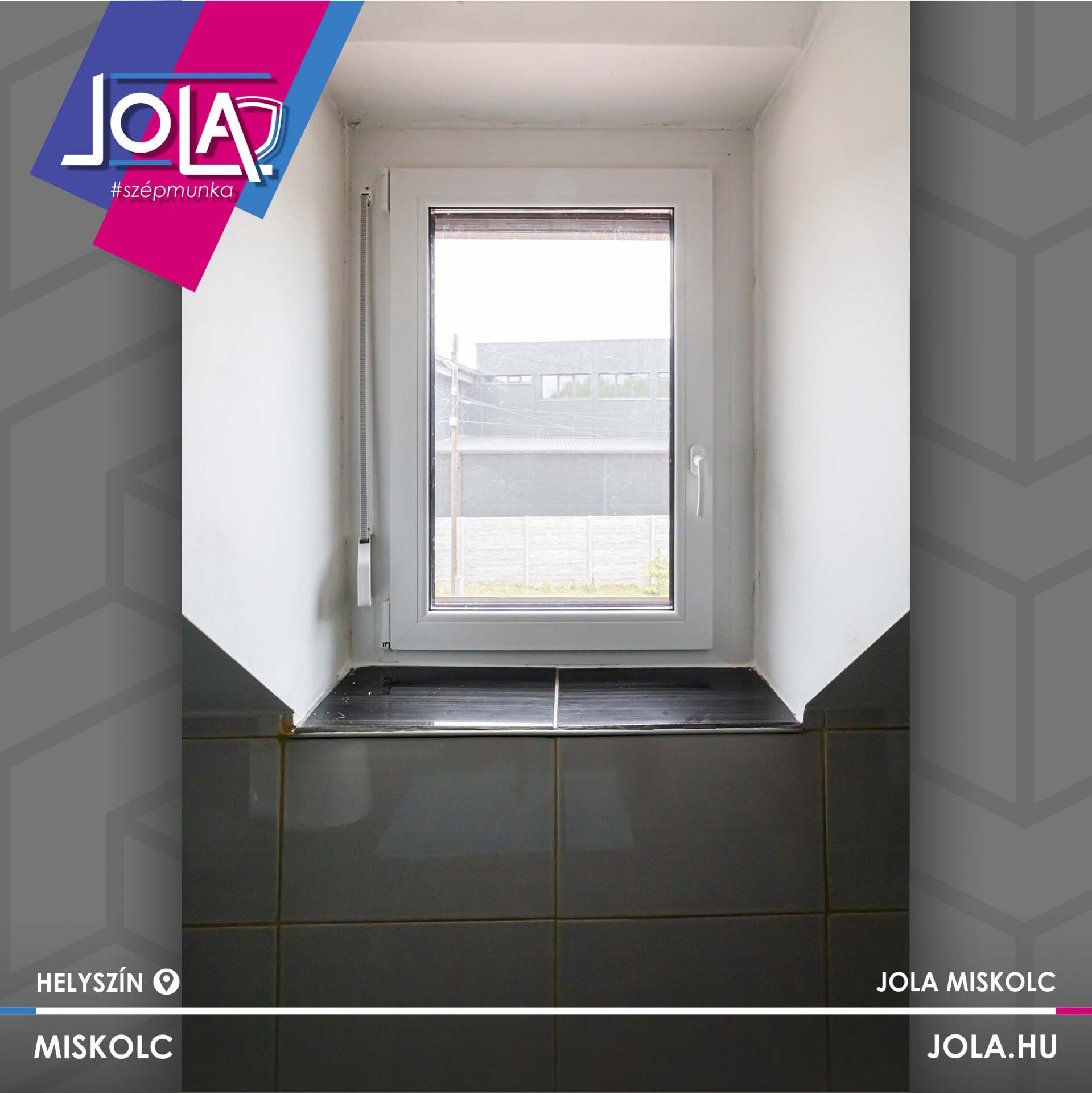 Tokosztott ablak redőnnyel Miskolcon, kerámia falburkolattal