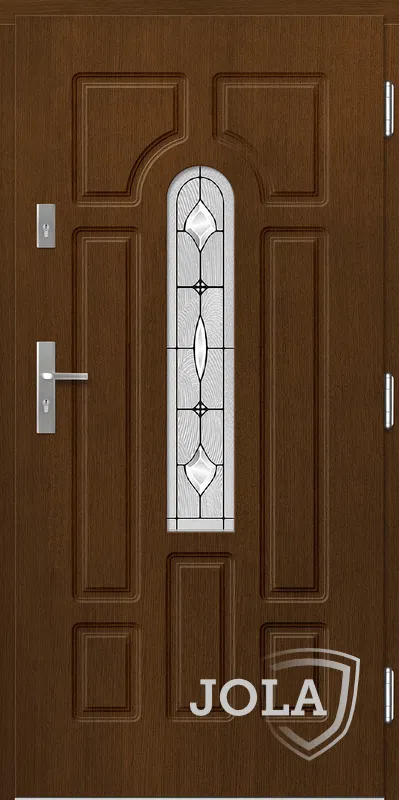 Kivitelezés: Tömítés a szárnyban és a tokban, betörésgátló csap a zsanér oldalán, a szárny külső burkolata vízálló rétegelt lemezből készült, a szárny belső szerkezete poliuretán habbal töltött méhrács.