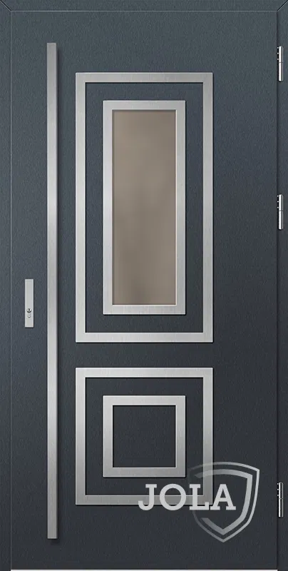 | Szárny és szárny merevítése: | PVC furnérral borított horganyzott acéllemezből, négyoldalas falccal, ragasztott fa kerettel, PUR habbal kitöltött ajtószárny |