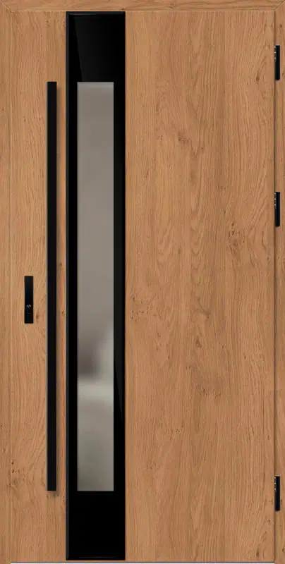 | Szárny és szárny merevítése: | PVC furnérral borított horganyzott acéllemezből, négyoldalas falccal, ragasztott fa kerettel, PUR habbal kitöltött ajtószárny |