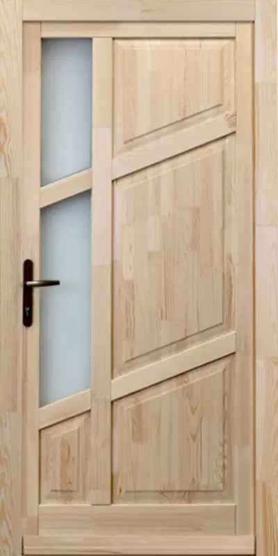 Típus : Hossztoldott, rétegragasztott borovi fenyő bejárati ajtó