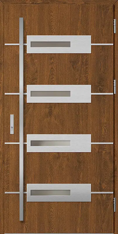 | Szárny és szárny merevítése: | PVC furnérral borított horganyzott acéllemezből, négyoldalas falccal, ragasztott fa kerettel, PUR habbal kitöltött ajtószárny |