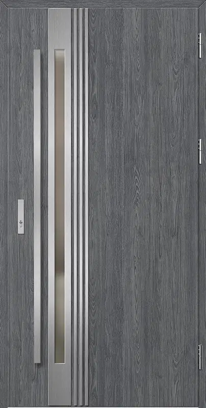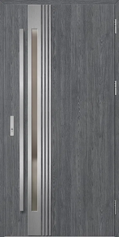 | Szárny és szárny merevítése: | PVC furnérral borított horganyzott acéllemezből, négyoldalas falccal, ragasztott fa kerettel, PUR habbal kitöltött ajtószárny |