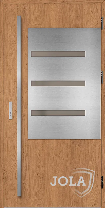 | Szárny és szárny merevítése: | PVC furnérral borított horganyzott acéllemezből, négyoldalas falccal, ragasztott fa kerettel, PUR habbal kitöltött ajtószárny |