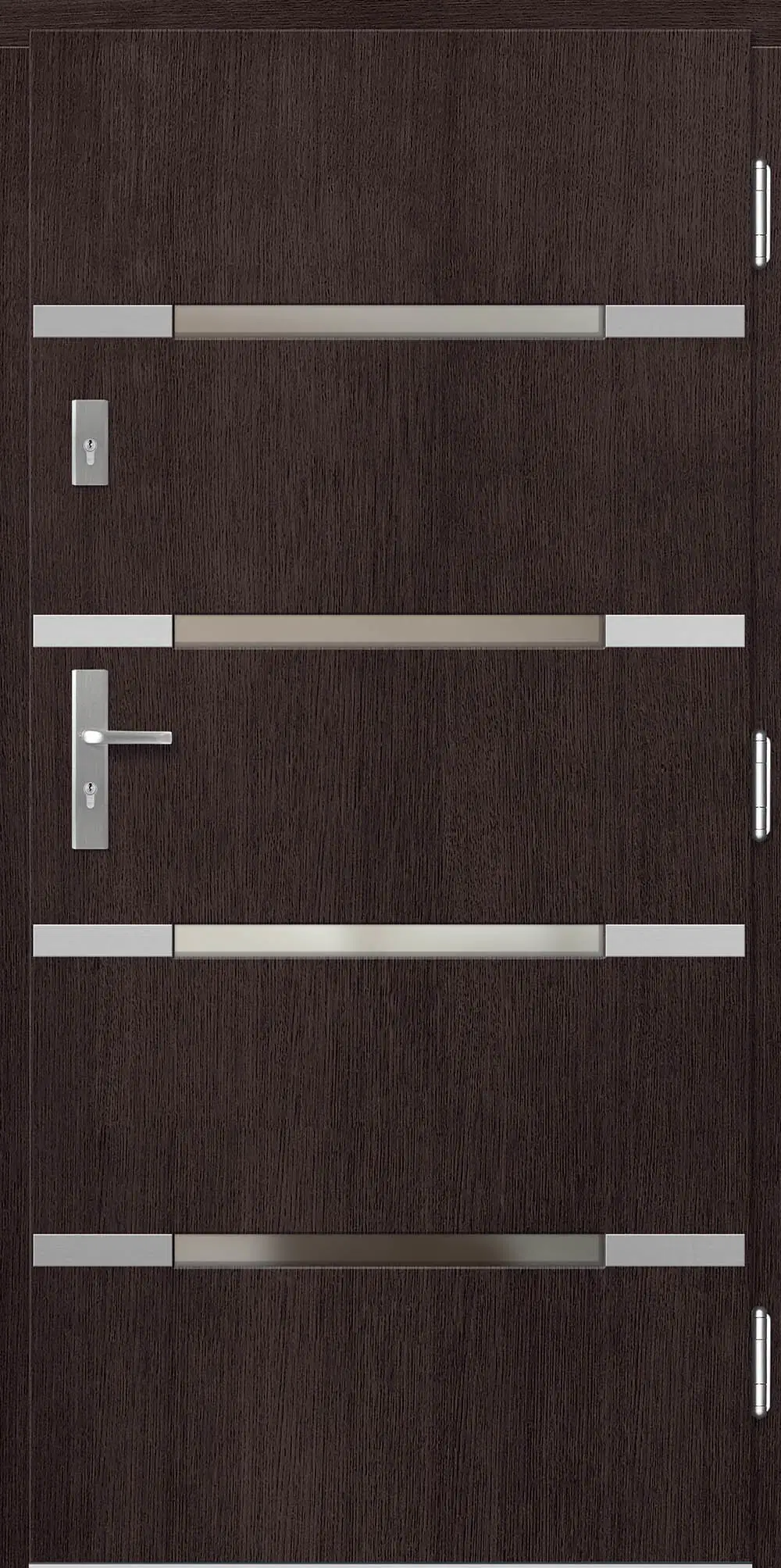 Leírás: A nemes szálcsiszolt alumínium a természetes fával együtt kiváló dizájnt képez. Az Inox betét ezenkívül védi az ajtó felületét a külső károsodásoktól.