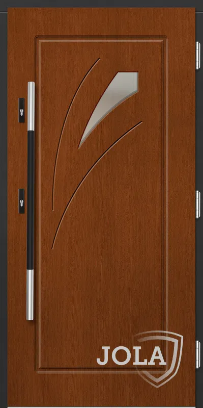 Kivitelezés: Tömítés a szárnyban és a tokban, betörésgátló csap a zsanér oldalán, a szárny külső burkolata vízálló rétegelt lemezből készült, a szárny belső szerkezete poliuretán habbal töltött méhrács.