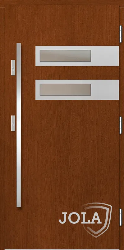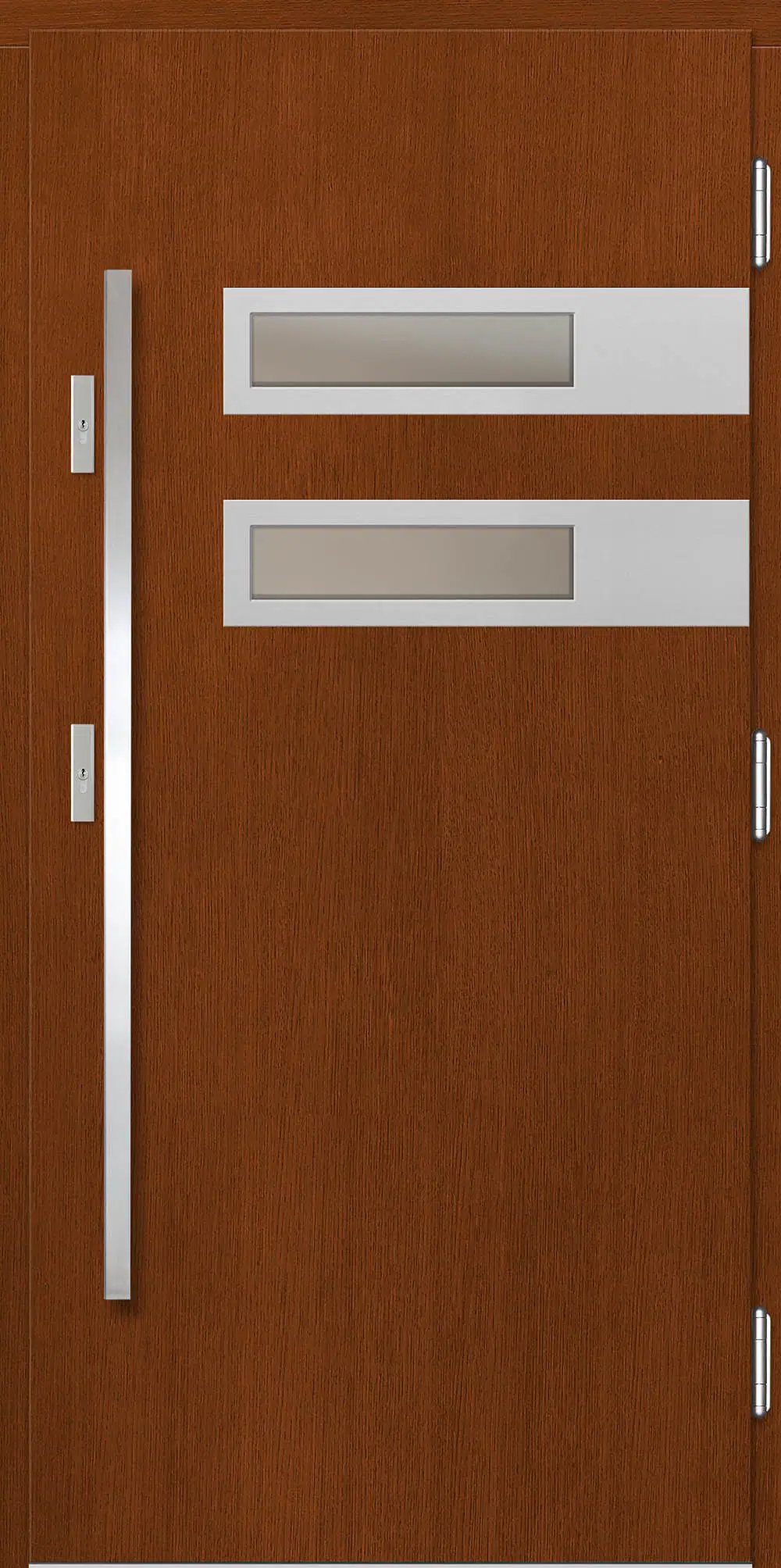 Leírás: A nemes szálcsiszolt alumínium a természetes fával együtt kiváló dizájnt képez. Az Inox betét ezenkívül védi az ajtó felületét a külső károsodásoktól.