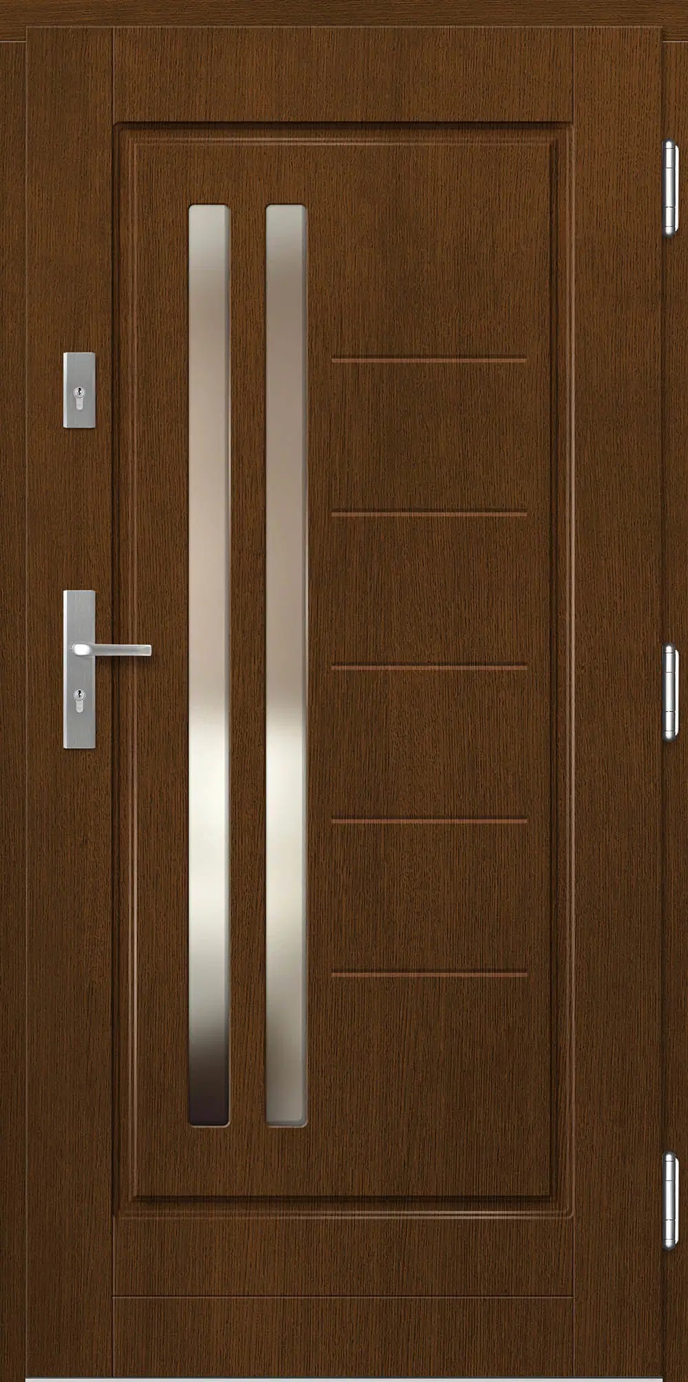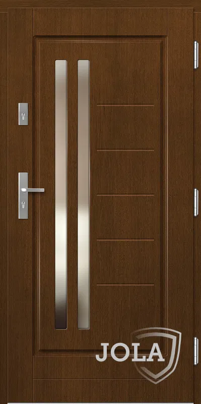 Kivitelezés: Tömítés a szárnyban és a tokban, betörésgátló csap a zsanér oldalán, a szárny külső burkolata vízálló rétegelt lemezből készült, a szárny belső szerkezete poliuretán habbal töltött méhrács.