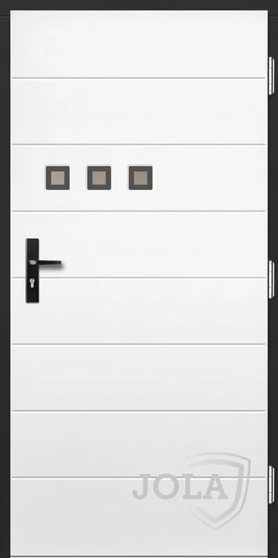 Kivitelezés: Tömítés a szárnyban és a tokban, betörésgátló csap a zsanér oldalán, a szárny külső burkolata vízálló rétegelt lemezből készült, a szárny belső szerkezete poliuretán habbal töltött méhrács.