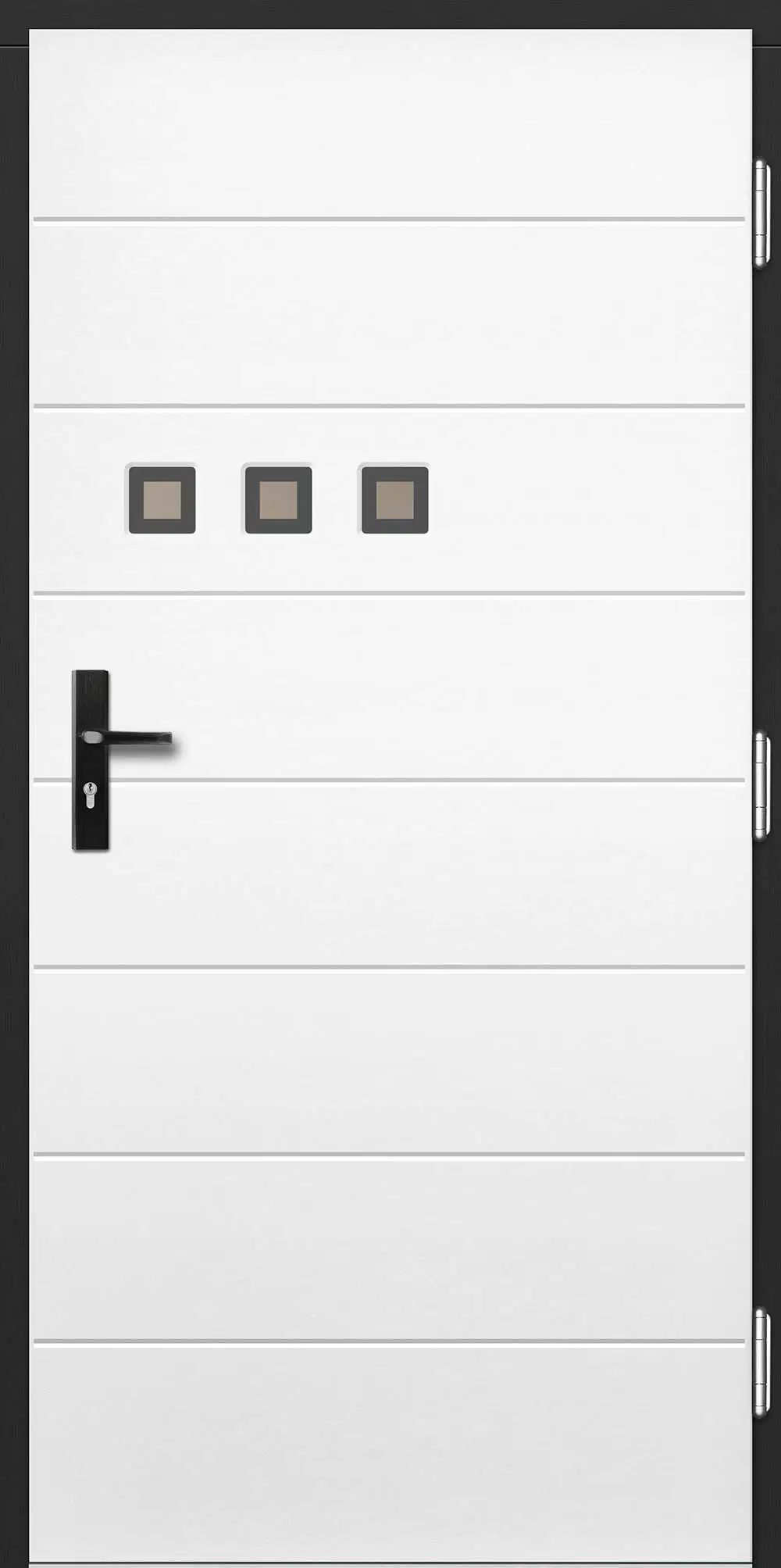 Leírás: Ezt a termékcsaládot modern mart formák és üvegezés jellemzi. A modellek geometriai ábrákon alapuló következetes mintázattal vannak ellátva.