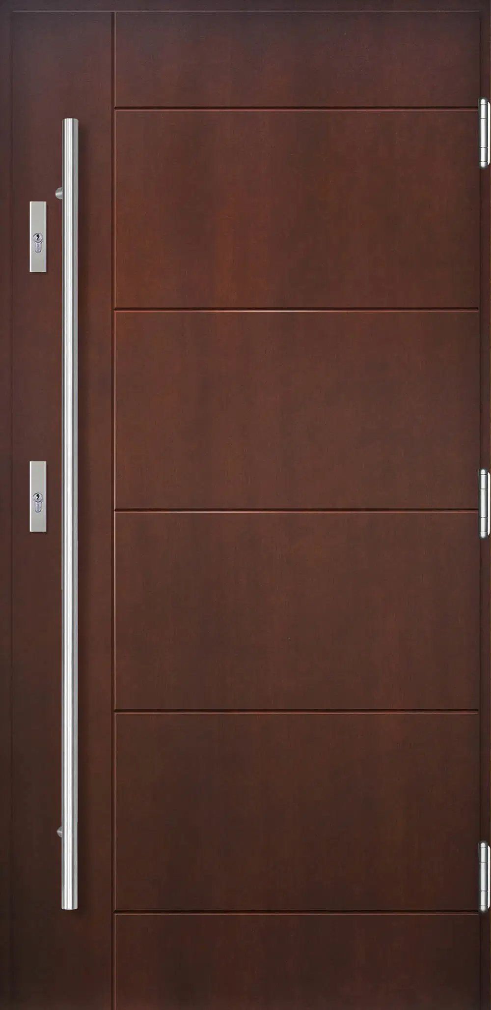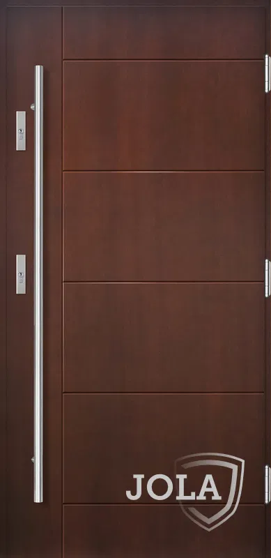 Kivitelezés: Tömítés a szárnyban és a tokban, betörésgátló csap a zsanér oldalán, a szárny külső burkolata vízálló rétegelt lemezből készült, a szárny belső szerkezete poliuretán habbal töltött méhrács.