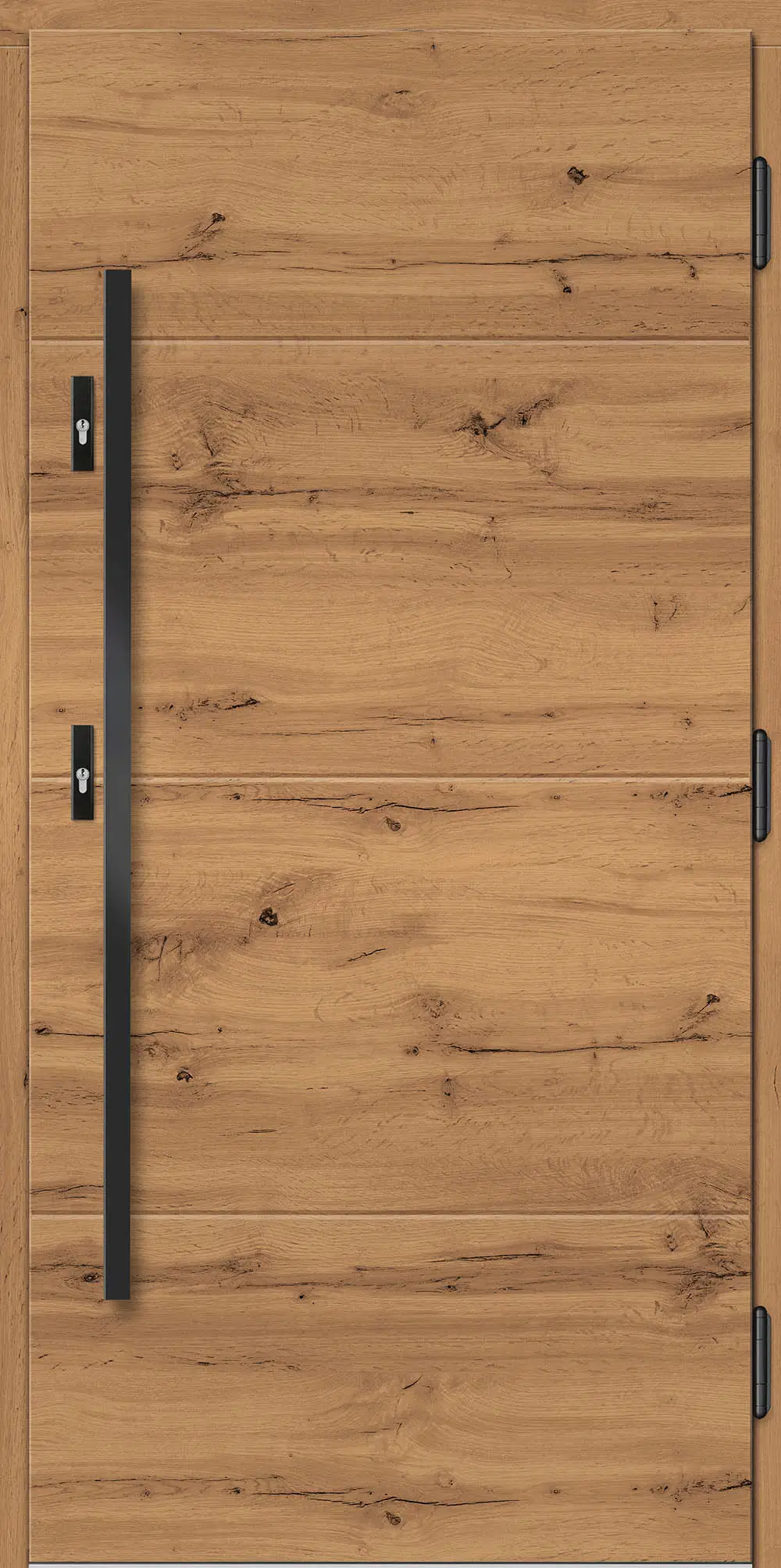 Kivitelezés: Tömítés a szárnyban és a tokban, betörésgátló csap a zsanér oldalán, a szárny külső burkolata vízálló rétegelt lemezből készült, a szárny belső szerkezete poliuretán habbal töltött méhrács.