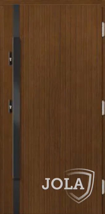 Kivitelezés: Tömítés a szárnyban és a tokban, betörésgátló csap a zsanér oldalán, a szárny külső burkolata vízálló rétegelt lemezből készült, a szárny belső szerkezete poliuretán habbal töltött méhrács.