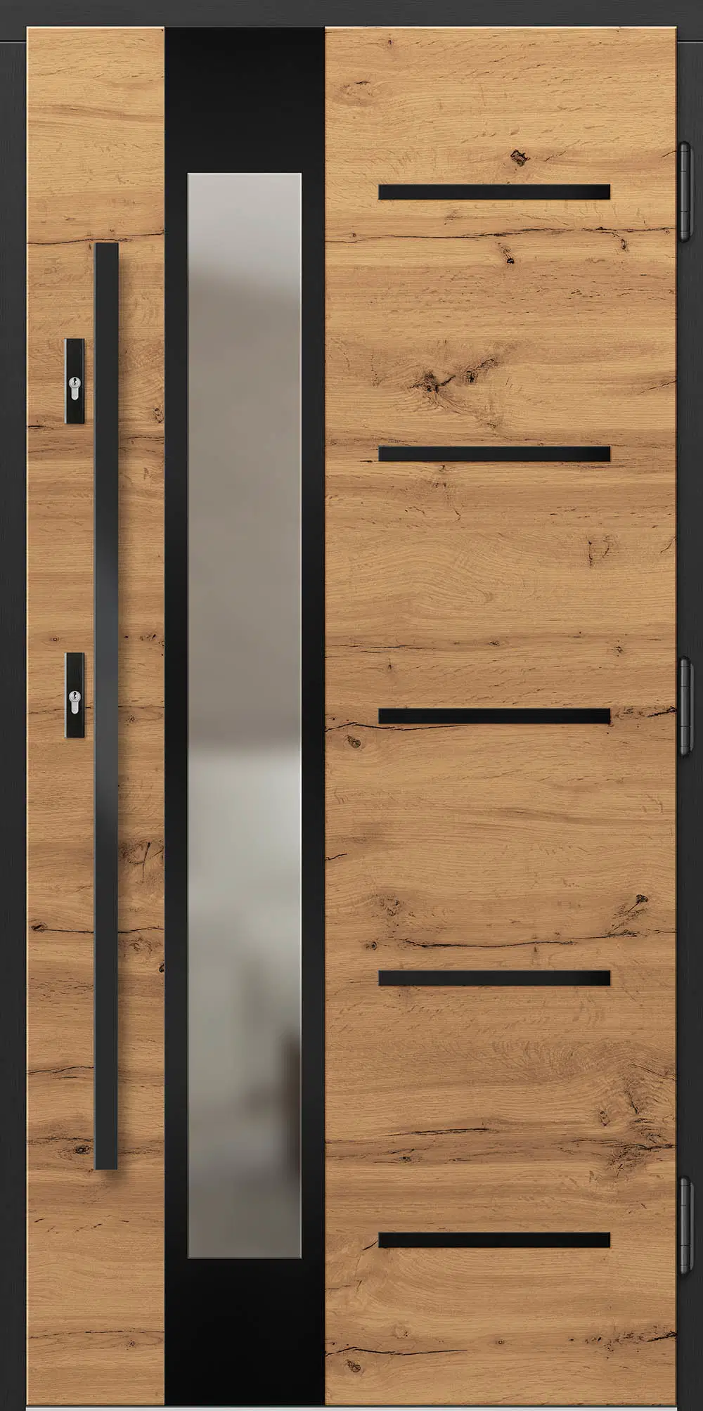Leírás: A nemes szálcsiszolt alumínium a természetes fával együtt kiváló dizájnt képez. Az Inox betét ezenkívül védi az ajtó felületét a külső károsodásoktól.