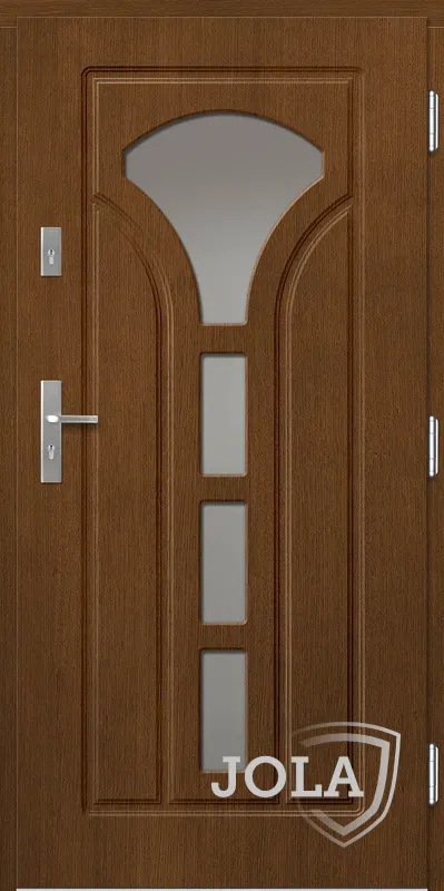 Kivitelezés: Tömítés a szárnyban és a tokban, betörésgátló csap a zsanér oldalán, a szárny külső burkolata vízálló rétegelt lemezből készült, a szárny belső szerkezete poliuretán habbal töltött méhrács.