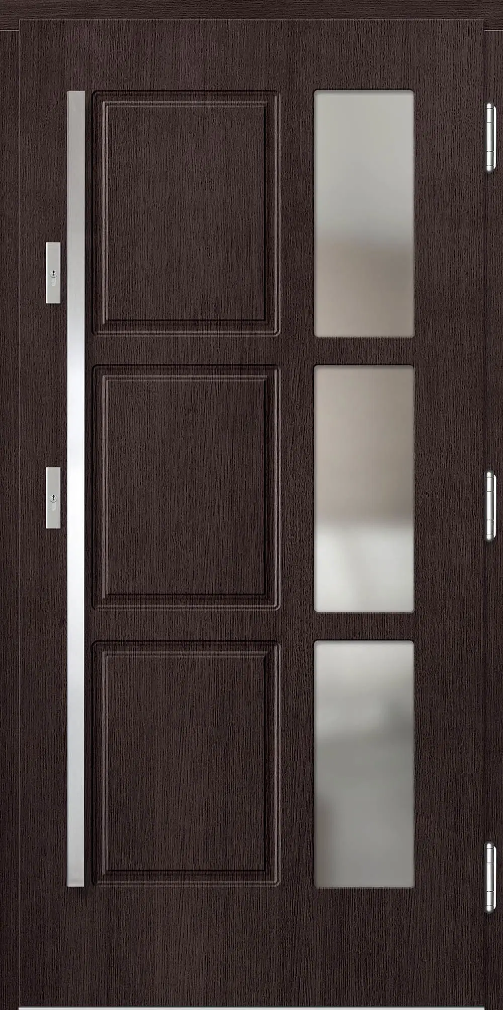 Kivitelezés: Tömítés a szárnyban és a tokban, betörésgátló csap a zsanér oldalán, a szárny külső burkolata vízálló rétegelt lemezből készült, a szárny belső szerkezete poliuretán habbal töltött méhrács.