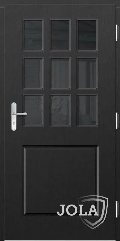 Kivitelezés: Tömítés a szárnyban és a tokban, betörésgátló csap a zsanér oldalán, a szárny külső burkolata vízálló rétegelt lemezből készült, a szárny belső szerkezete poliuretán habbal töltött méhrács.
