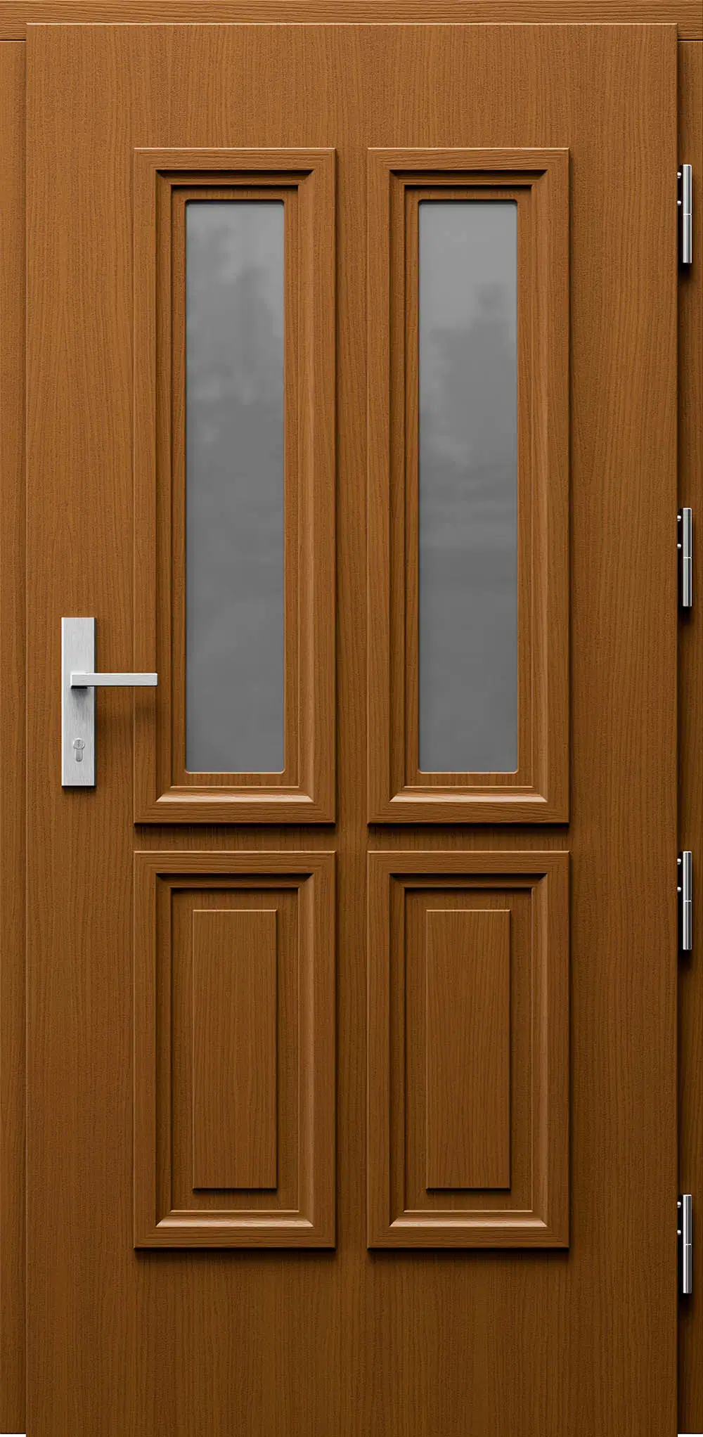 | Kivitelezés: | Tömítés a szárnyban és a tokban, betörésgátló csap a zsanér oldalán, a szárny külső burkolata vízálló rétegelt lemezből készült, a szárny belső szerkezete poliuretán habbal töltött méhrács. |
