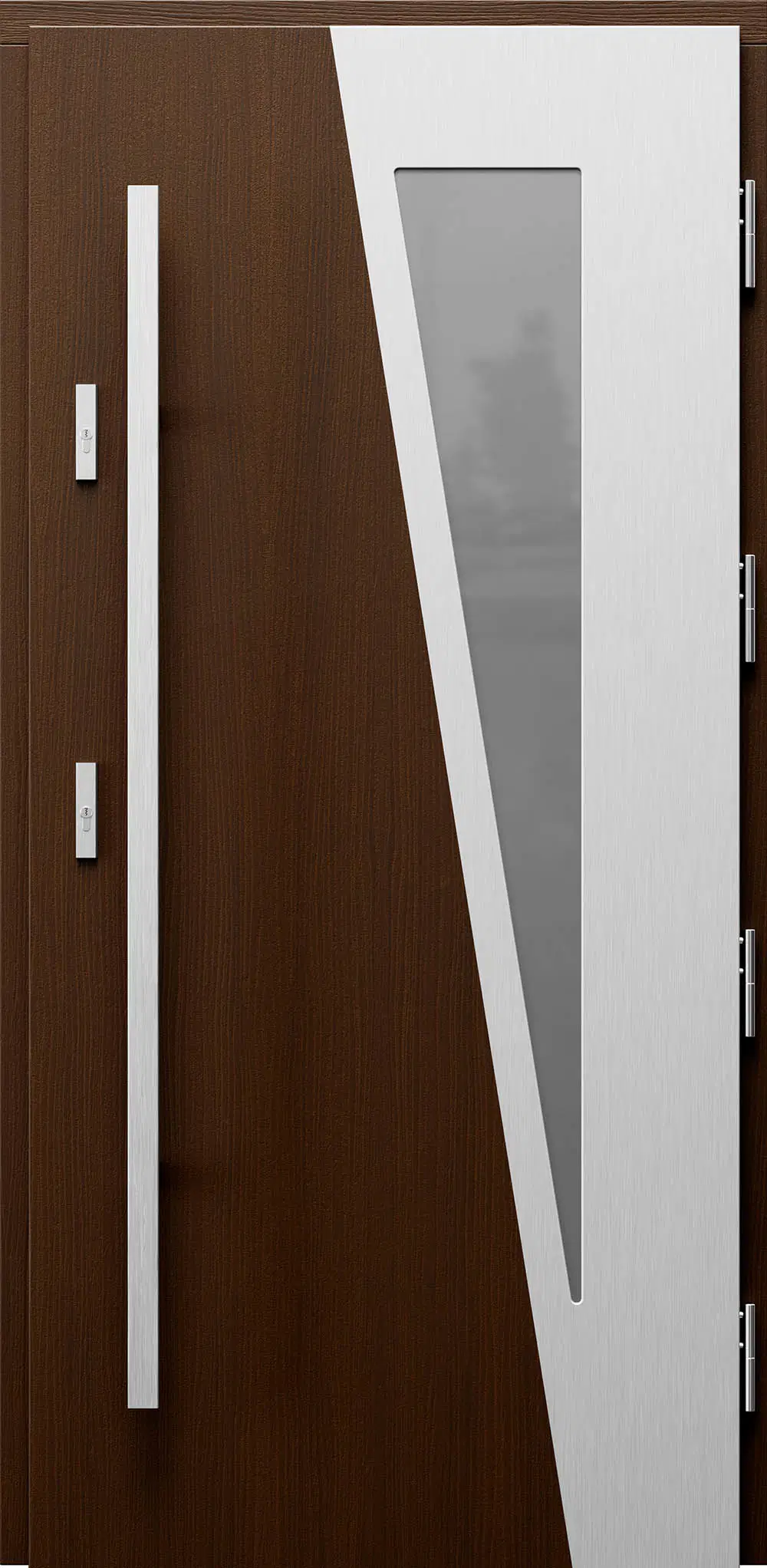 Leírás: A nemes szálcsiszolt alumínium a természetes fával együtt kiváló dizájnt képez. Az Inox betét ezenkívül védi az ajtó felületét a külső károsodásoktól.