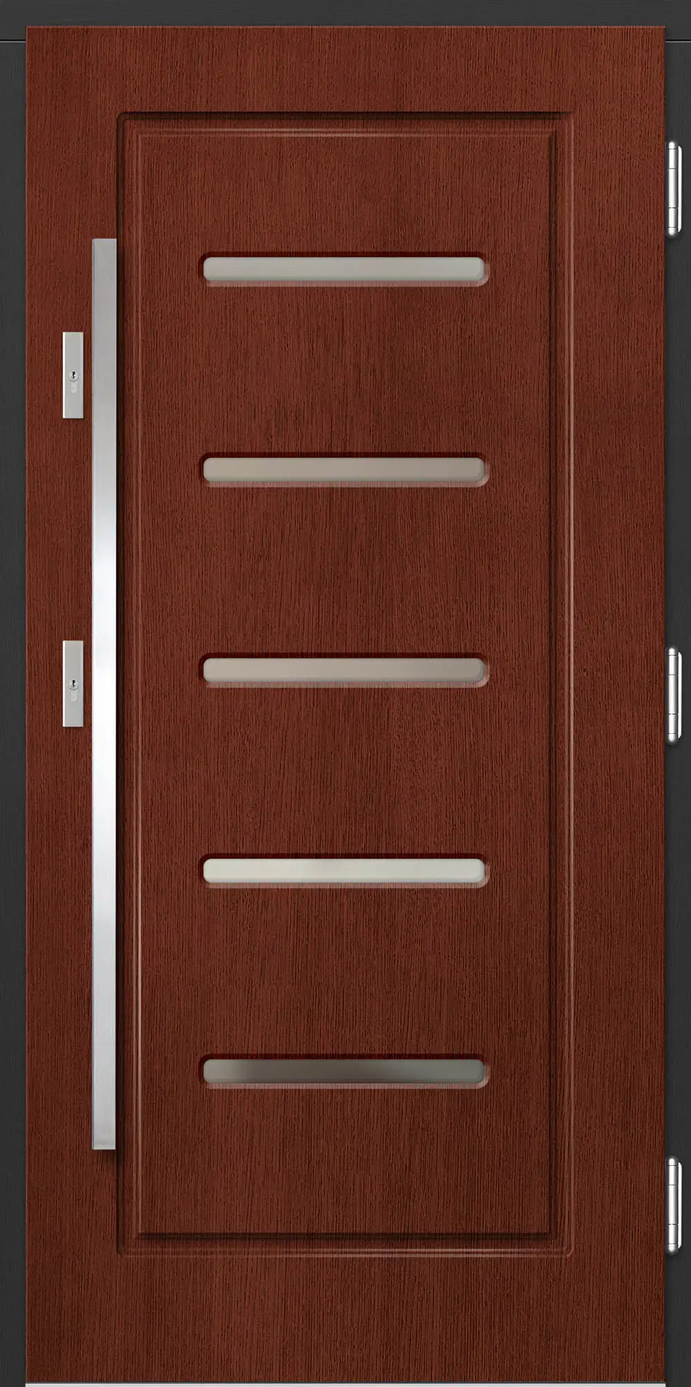 Leírás: Ezt a termékcsaládot modern mart formák és üvegezés jellemzi. A modellek geometriai ábrákon alapuló következetes mintázattal vannak ellátva.