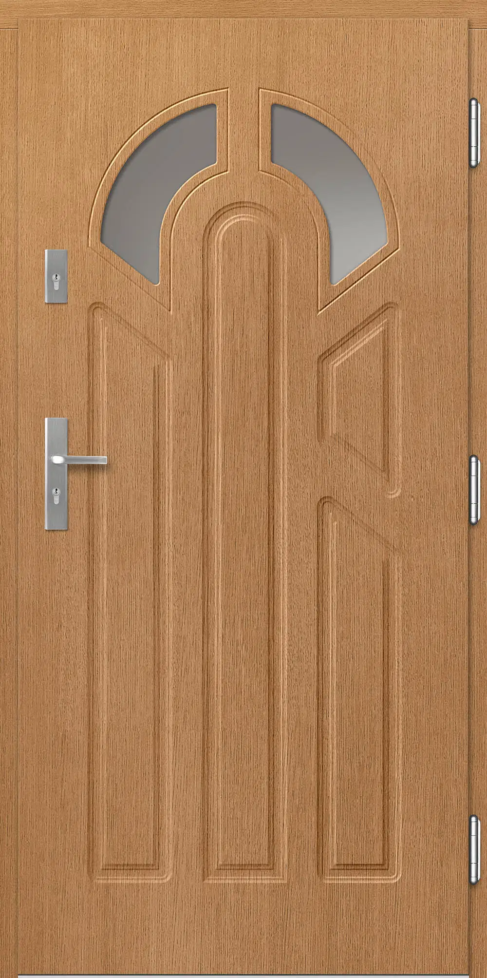 Kivitelezés: Tömítés a szárnyban és a tokban, betörésgátló csap a zsanér oldalán, a szárny külső burkolata vízálló rétegelt lemezből készült, a szárny belső szerkezete poliuretán habbal töltött méhrács.