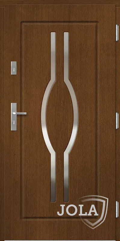 Kivitelezés: Tömítés a szárnyban és a tokban, betörésgátló csap a zsanér oldalán, a szárny külső burkolata vízálló rétegelt lemezből készült, a szárny belső szerkezete poliuretán habbal töltött méhrács.