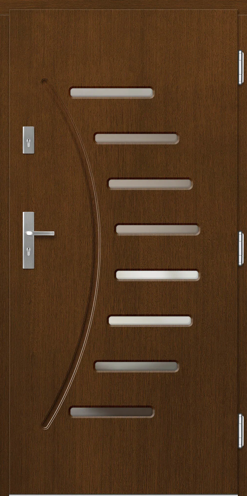 Leírás: Ezt a termékcsaládot modern mart formák és üvegezés jellemzi. A modellek geometriai ábrákon alapuló következetes mintázattal vannak ellátva.