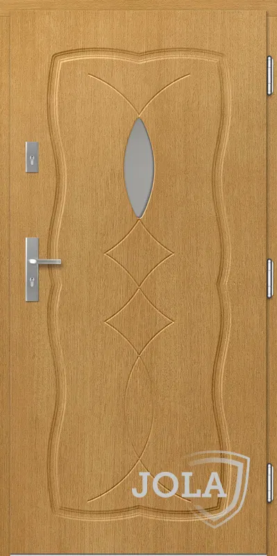 Kivitelezés: Tömítés a szárnyban és a tokban, betörésgátló csap a zsanér oldalán, a szárny külső burkolata vízálló rétegelt lemezből készült, a szárny belső szerkezete poliuretán habbal töltött méhrács.