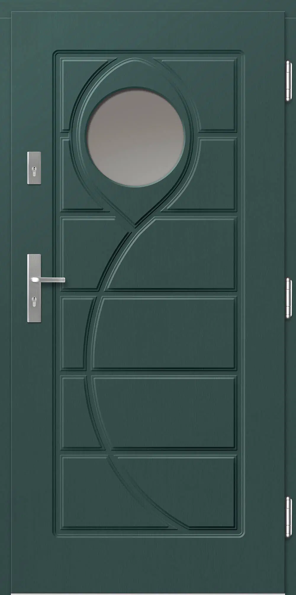 Kivitelezés: Tömítés a szárnyban és a tokban, betörésgátló csap a zsanér oldalán, a szárny külső burkolata vízálló rétegelt lemezből készült, a szárny belső szerkezete poliuretán habbal töltött méhrács.