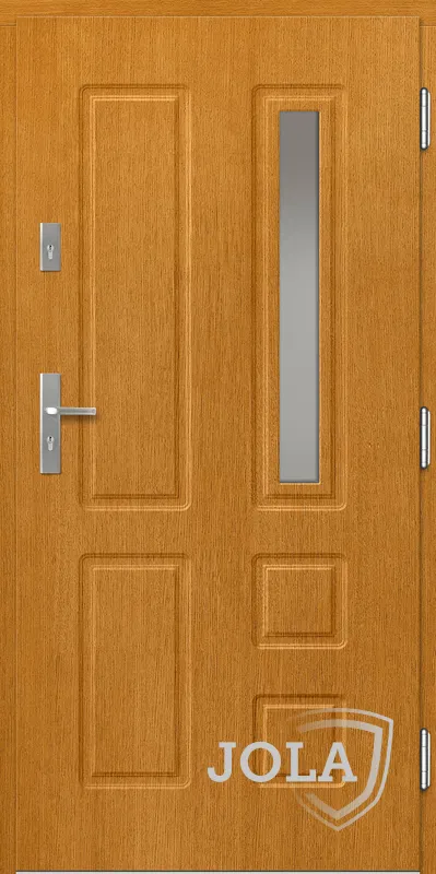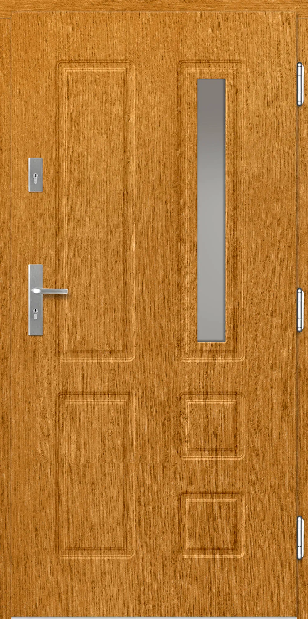 Kivitelezés: Tömítés a szárnyban és a tokban, betörésgátló csap a zsanér oldalán, a szárny külső burkolata vízálló rétegelt lemezből készült, a szárny belső szerkezete poliuretán habbal töltött méhrács.