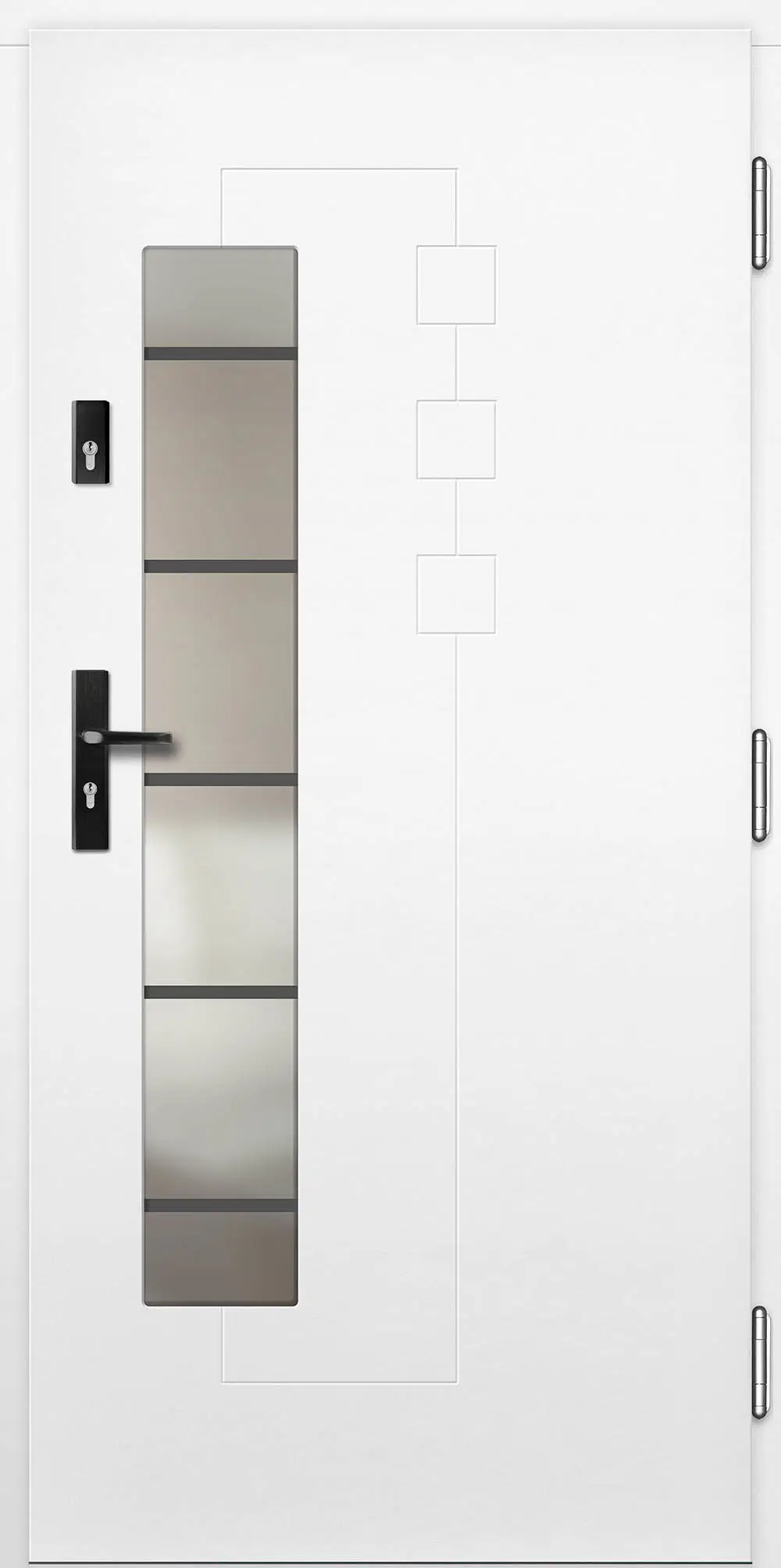 Leírás: Ezt a termékcsaládot modern mart formák és üvegezés jellemzi. A modellek geometriai ábrákon alapuló következetes mintázattal vannak ellátva.