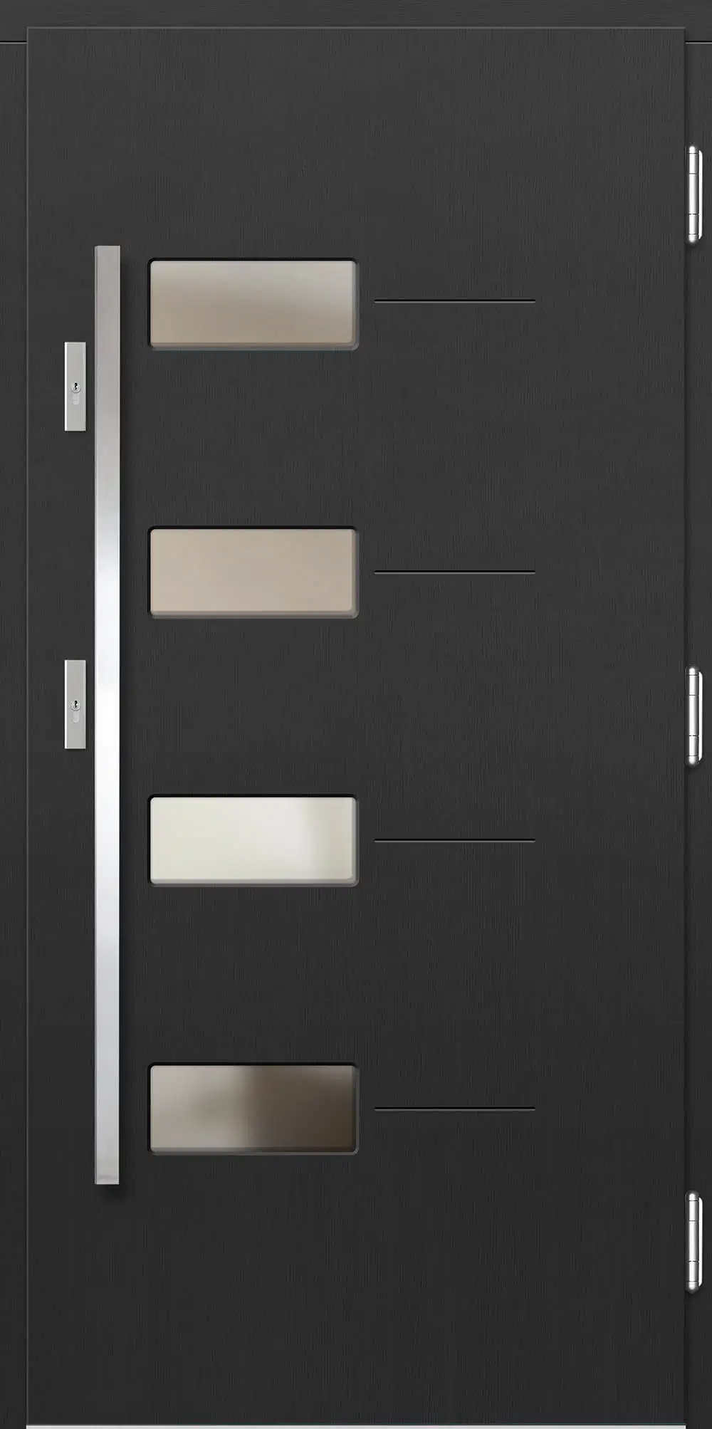 Leírás: Ezt a termékcsaládot modern mart formák és üvegezés jellemzi. A modellek geometriai ábrákon alapuló következetes mintázattal vannak ellátva.