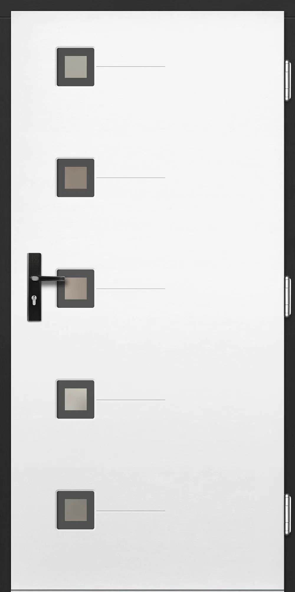Leírás: Ezt a termékcsaládot modern mart formák és üvegezés jellemzi. A modellek geometriai ábrákon alapuló következetes mintázattal vannak ellátva.