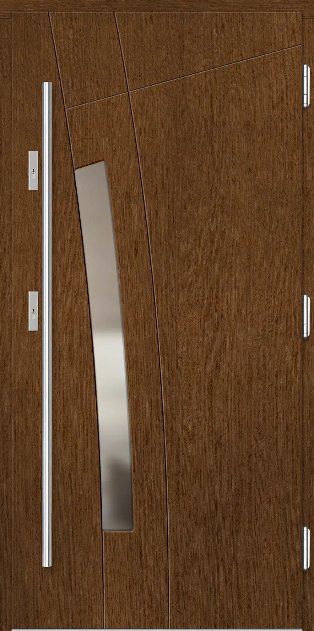 Leírás: Ezt a termékcsaládot modern mart formák és üvegezés jellemzi. A modellek geometriai ábrákon alapuló következetes mintázattal vannak ellátva.