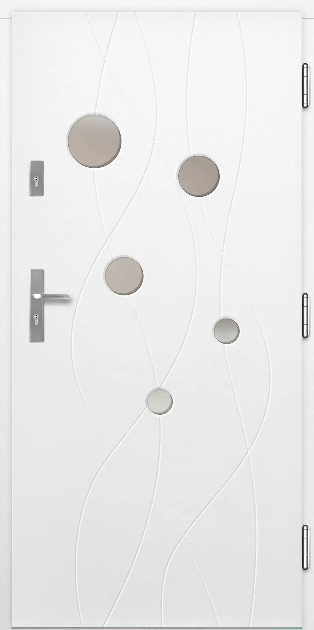 Leírás: Ezt a termékcsaládot modern mart formák és üvegezés jellemzi. A modellek geometriai ábrákon alapuló következetes mintázattal vannak ellátva.