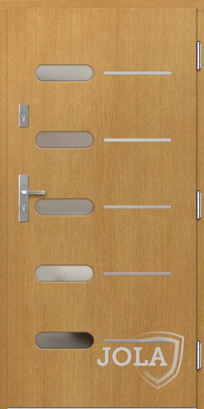Kivitelezés: Tömítés a szárnyban és a tokban, betörésgátló csap a zsanér oldalán, a szárny külső burkolata vízálló rétegelt lemezből készült, a szárny belső szerkezete poliuretán habbal töltött méhrács.