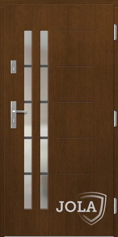 Kivitelezés: Tömítés a szárnyban és a tokban, betörésgátló csap a zsanér oldalán, a szárny külső burkolata vízálló rétegelt lemezből készült, a szárny belső szerkezete poliuretán habbal töltött méhrács.
