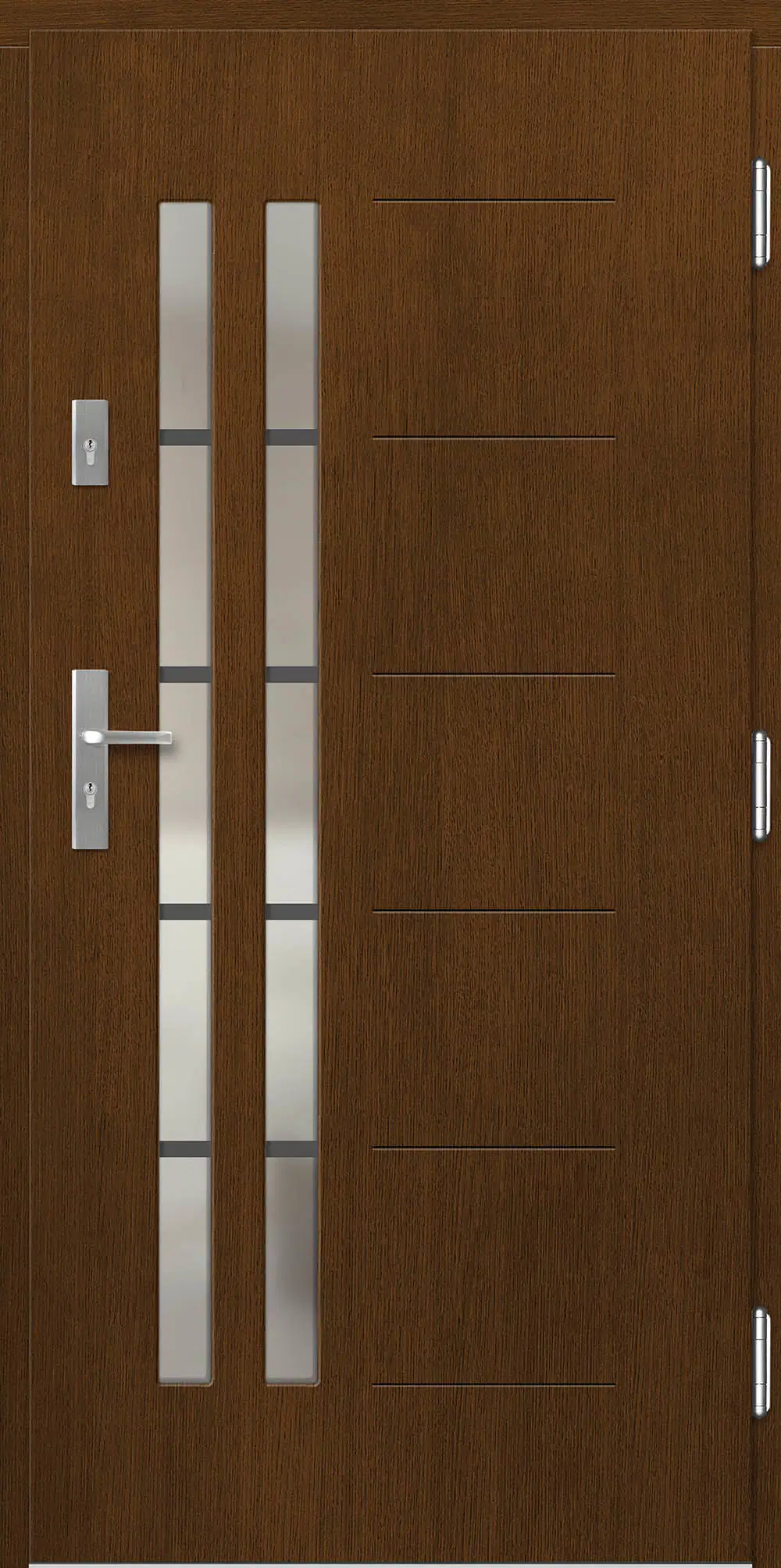 Leírás: Ezt a termékcsaládot modern mart formák és üvegezés jellemzi. A modellek geometriai ábrákon alapuló következetes mintázattal vannak ellátva.