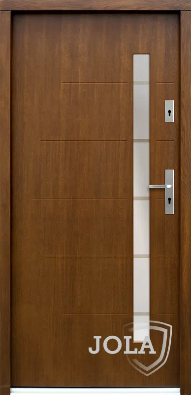 Kivitelezés: Tömítés a szárnyban és a tokban, betörésgátló csap a zsanér oldalán, a szárny külső burkolata vízálló rétegelt lemezből készült, a szárny belső szerkezete poliuretán habbal töltött méhrács.