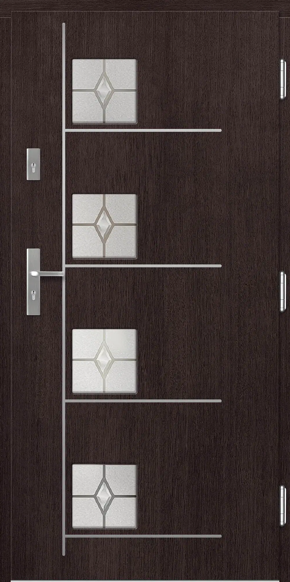 Leírás: A nemes szálcsiszolt alumínium a természetes fával együtt kiváló dizájnt képez. Az Inox betét ezenkívül védi az ajtó felületét a külső károsodásoktól.